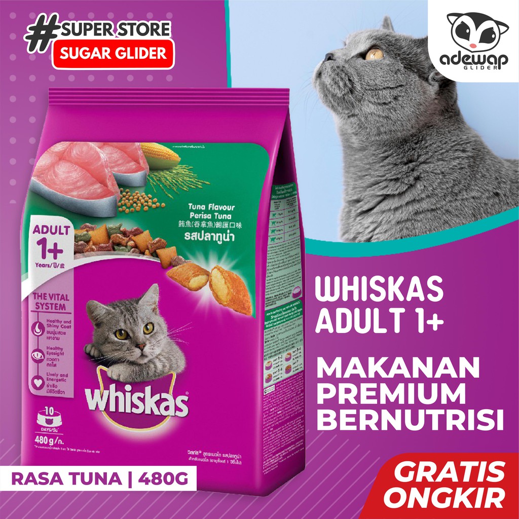 Jual Whiskas Adult 1 Plus 480gr Makanan Kering Kucing Dry Cat Food Rasa Tuna 480 Gram Indonesia Shopee Indonesia