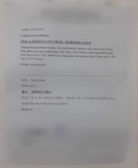 Tular Dakwaan Kononnya Memo Cuti Raya Haji Diganti Dengan Tahun Baru Cina Ini Respon Dipercayai Pekerja Syarikat Itu