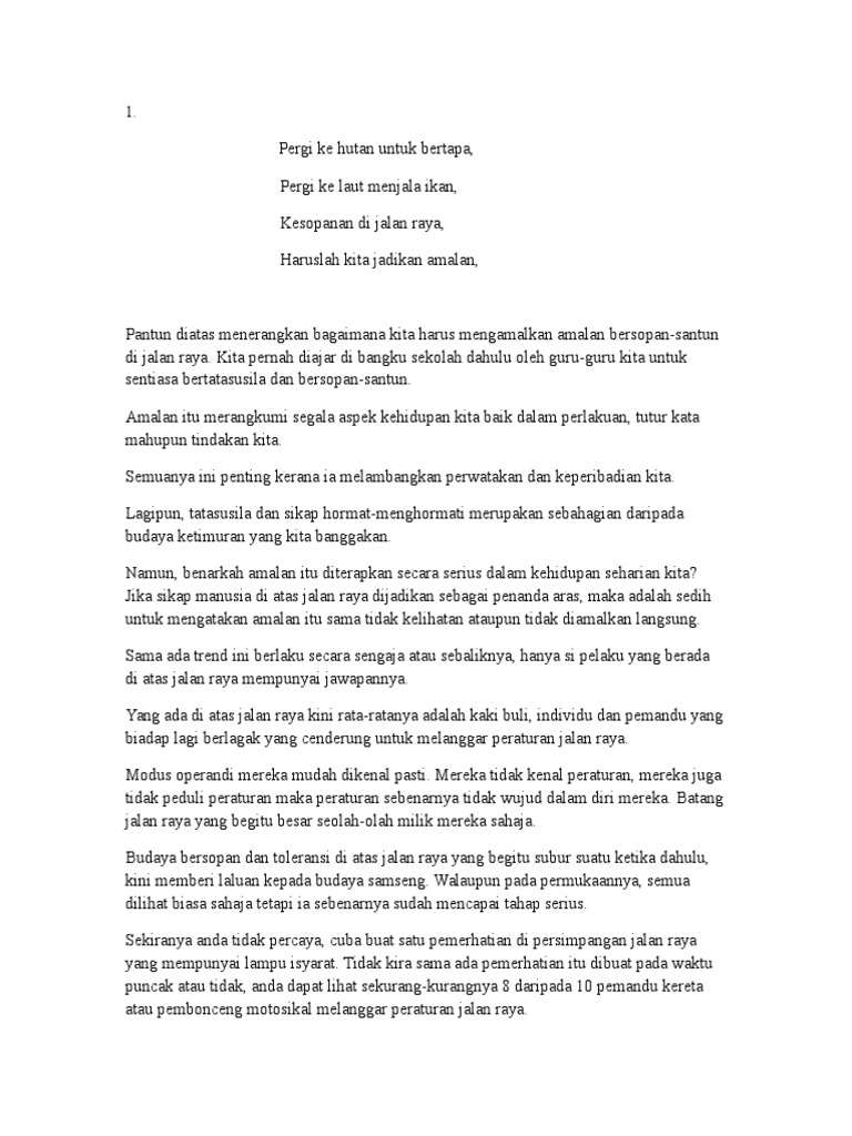 August 19 2019 at 711 AM Unknown said. Cara cara bersopan santun di jalan raya contoh karangan berpandu 1 selain agama sunda wiwitan orang sunda juga yaitu ramah 39 suara santun. Cara-cara Mengurangkan Kadar Kemalangan Jalan Raya Yang dihormati Tuan Pengerusi Majlis Yang Berusaha Tuan Guru Besar guru-guru serta.